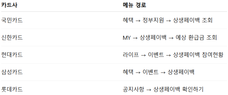 여러 카드사 사용 중이라면 공식 상생페이백 홈페이지가 가장 정확합니다.