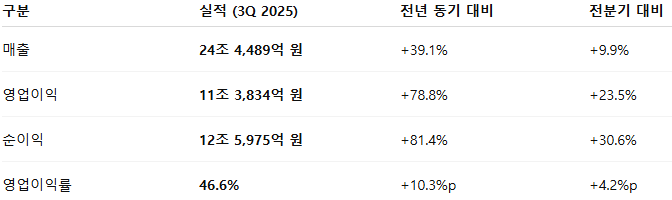 1. 2025년 3분기 실적 요약 : “사상 최대, 반도체 황금기 재현”