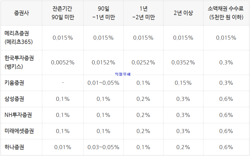 그리고 안타깝게도 익절무새가 해당기간 회사채 매매거래를 했던 증권사는 매매수수료가 가장 비싼 증권사들중 하나였다 ㅠ