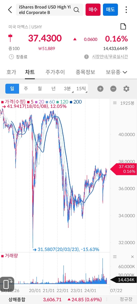 미국 주식투자를 선호하시는 분들은 USHY에